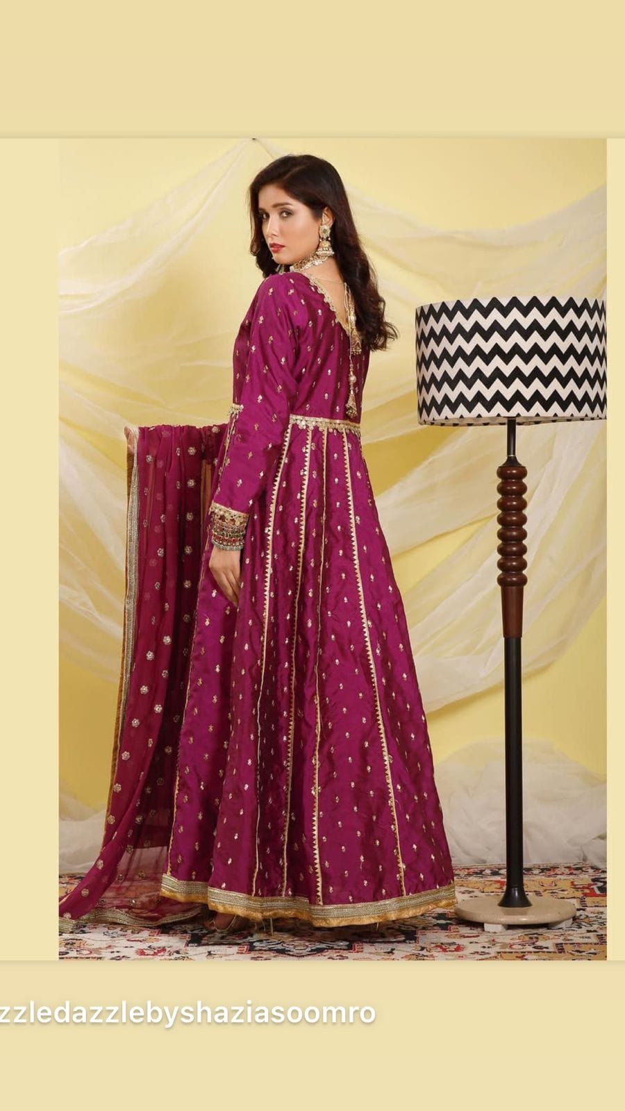 Multi paneled big flaired Anarkali with Zari & tilla work paired with chiffon duppta.
